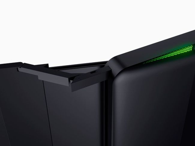 Не нужно быть семи пядей во лбу, чтобы понять: размеры такого ноутбука, а особенно его толщина, будут довольно впечатляющими. Ноутбук будет весить более 5 килограммов. После того, как вы открываете ноутбук, вы можете раздвинуть два дополнительных дисплея в стороны и зафиксировать их при помощи специальных защёлок, тем самым получая широкий экран, состоящий из трёх 17-дюймовых матриц и обеспечивающий игроку обзор на 180 градусов. Каждый дисплей выполнен по технологии IGZO и поддерживает разрешение 4K. Изображение на них будет синхронизироваться при помощи технологии NVIDIA G-Sync.